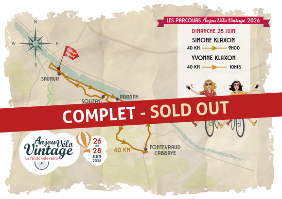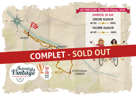Water bottles have been removed from the Anjou Vélo Vintage routes in favor of water stations for your refreshment. Reserve your water bottle bearing the events colours (available for pick-up when you collect your race bib) or remember to bring your own!