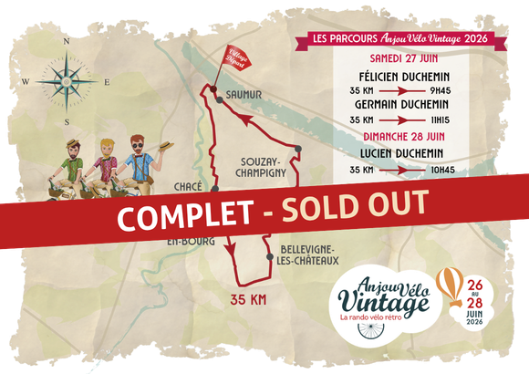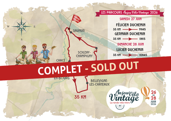 - Rando avec option gourde aux couleurs Anjou Vélo Vintage : 62 € (60 € pour les licenciés FFCT)